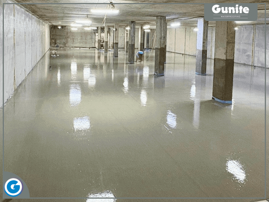 Sacrificial screed works underway – forming perimeter channels to prep for the next stages.