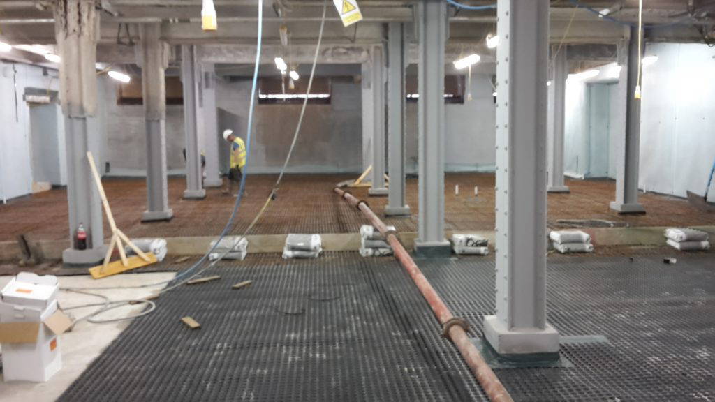 Prior to the application of the waterproofing measures, the existing walls & floors had to be grit blasted to provide a surface suitable for the application of the pre-bagged Sika®-1 system. Many areas of brickwork had to be strengthened by Gunite Waterproofing utilising Helifix’s ‘Helibeam’ products where masonry had lost its load-bearing capabilities.